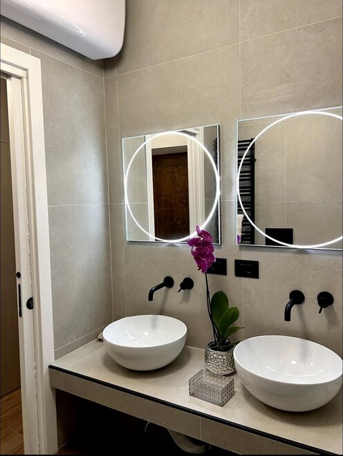 2) просторной ванной комнате с душевой кабиной, санузлом, 2 раковинами, бойлером для горячей воды