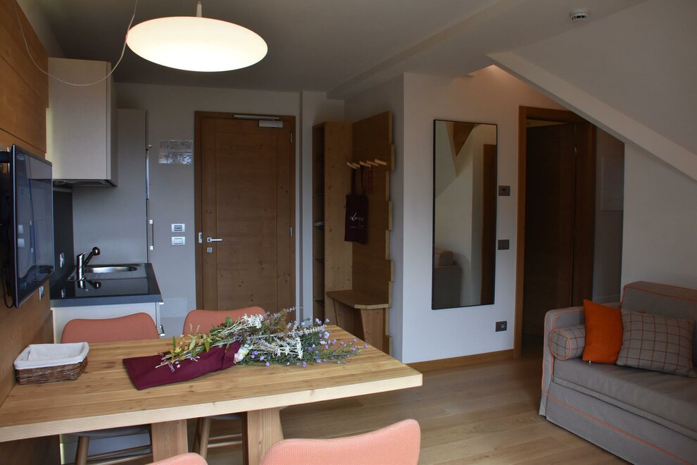 Закрой глаза и медленно дыши, ты почувствуешь аромат елей и лиственниц нашего сада. Подойди еще немного ближе, ты сможешь дотронуться до Доломитов пальцем… Слышишь свист сурков, которые готовятся ко сне зимой? Они будут восхищаться, как снежинки опускаются и ложатся, с невероятной нежностью, на луга. Представь себе глубокий цвет красной розы, тепло огня в камине и открой глаза: перед тобой спектакль Эндрозадиры на Пале ди Сан Мартино. Получи все эти эмоции, проведя отпуск в нашем Резиденции, новой, современной структуре, обеспеченной всеми удобствами. Наши 10 апартаментов располагают уникальным расположением: прямо в центре и с большим частным парком, они являются идеальным выбором для независимого и восстанавливающего отдыха. У нас есть жилые единицы, подходящие для всех потребностей; мы предлагаем приветливый прием и специальные услуги.