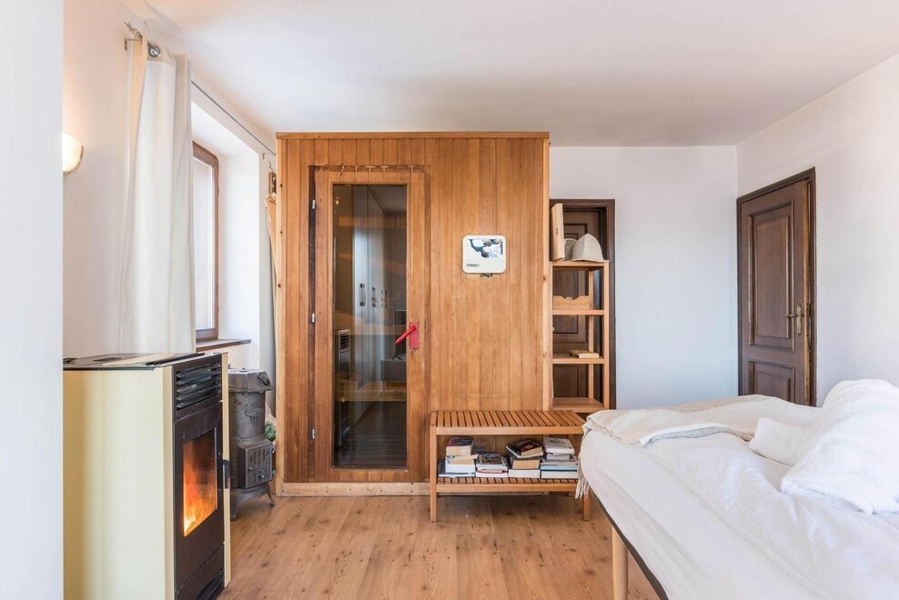 Кроме того, имеется частная финская сауна, собственный тренажерный зал с базовым оборудованием, ski storage, стуба с другим камином и сауной.