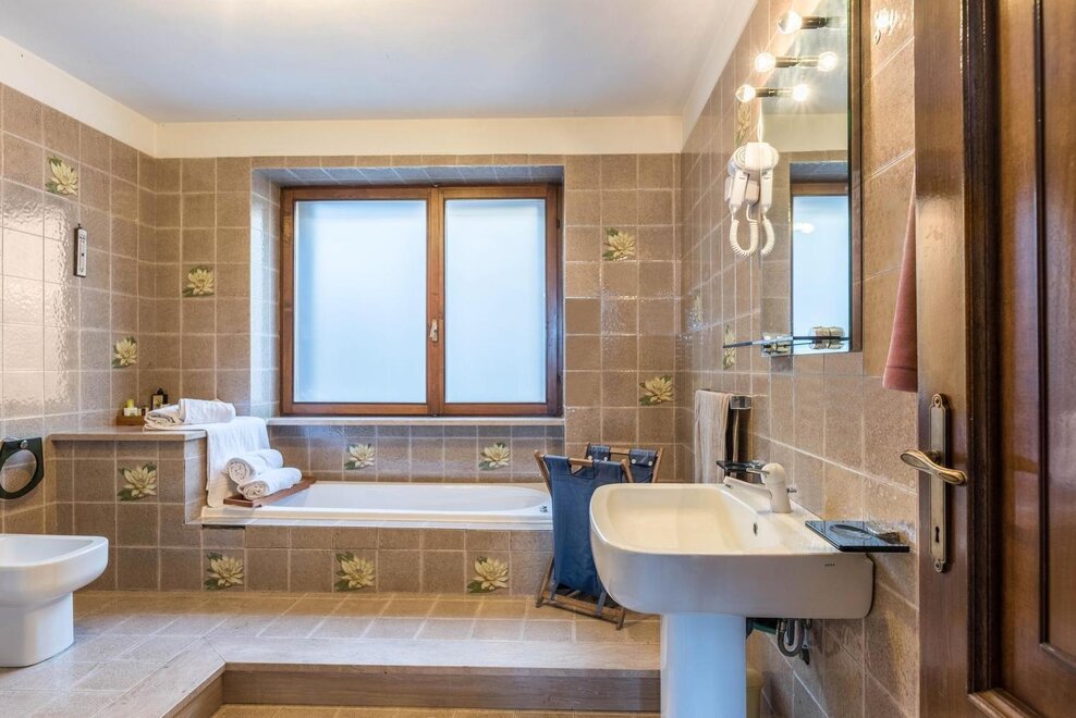 Структура состоит из 3 этажей и включает в себя просторную гостиную с большим камином, полностью оборудованную кухню с посудомоечной машиной, 6 спален и 2 ванных комнаты с ванной/душем, туалетом, раковиной и биде, 2 минимальные ванные комнаты с раковиной и туалетом, что позволяет разместить 12 человек.