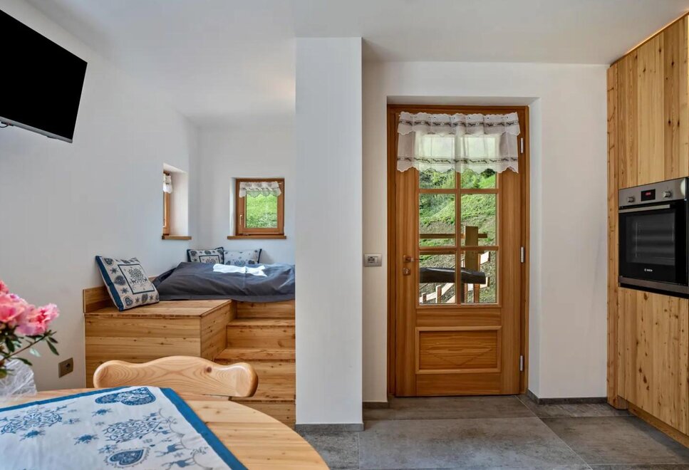 Сельский дом на границе леса, вблизи водопадов Вальорц; недавно отремонтирован (открытие в январе 2024 года) на основе исторического здания, датируемого 1700 годом. Прямо от дома можно отправляться пешком на множество походов различной сложности и продолжительности. В нескольких шагах находится расслабляющая тропа Кнайпп, маршрут для ходьбы босиком в тесном контакте с природой, а также игровая площадка с характерным прудом, который можно пересечь на плотах. Дом состоит из четырех различных жилых единиц с независимым входом. На первом этаже расположен просторный гараж, общая прачечная и зона для хранения лыжного и горного снаряжения с сушилкой для ботинок. Три из четырех апартаментов доступны на лифте прямо из гаража. Снаружи недвижимость включает зеленые зоны, оборудованные столами и грилем.