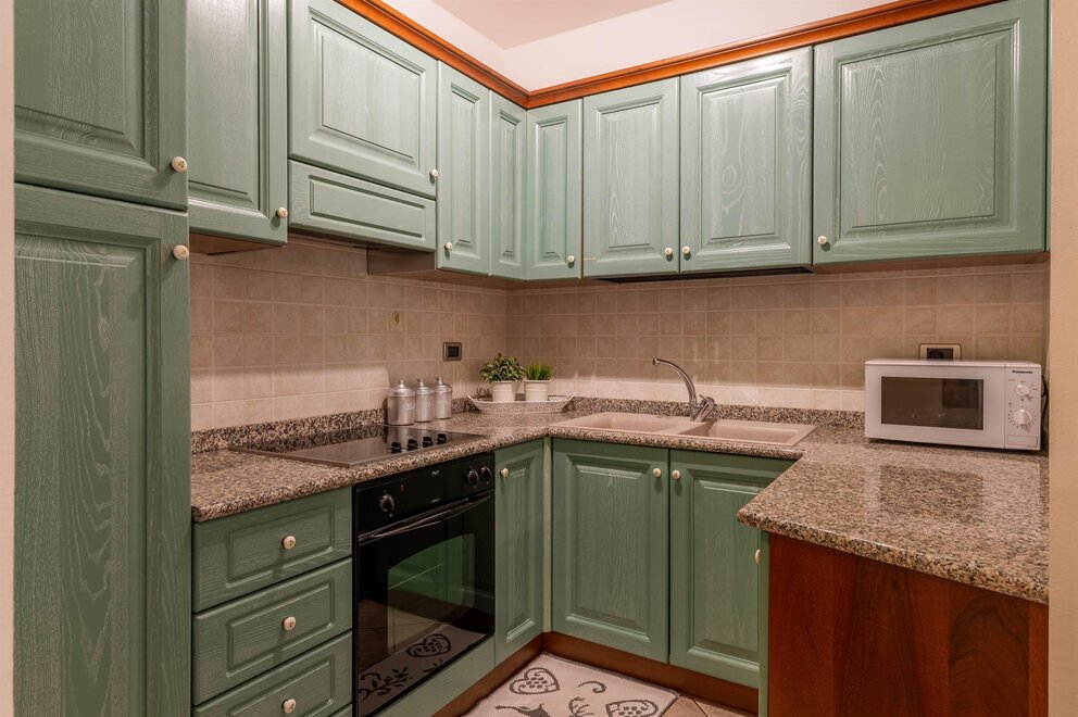 Апартамент № 5 на 6/7 человек, площадью 75 кв. м на втором этаже с садом (в доме есть удобный лифт). Состоит из гостиной с ЖК телевизором с диагональю 40 дюймов, уголка кухни с посудомоечной машиной, холодильником с морозильной камерой и стеклокерамической плитой. ТРИ СПАЛЬНИ (2 комнаты с двуспальными кроватями и одна комната с двуспальной кроватью + односпальная кровать) И ДВА САНУЗЛА, полностью оборудованные душевой кабиной и/или ванной и феном. У нас есть сейф и доступ в Интернет через Wi-Fi включен.
