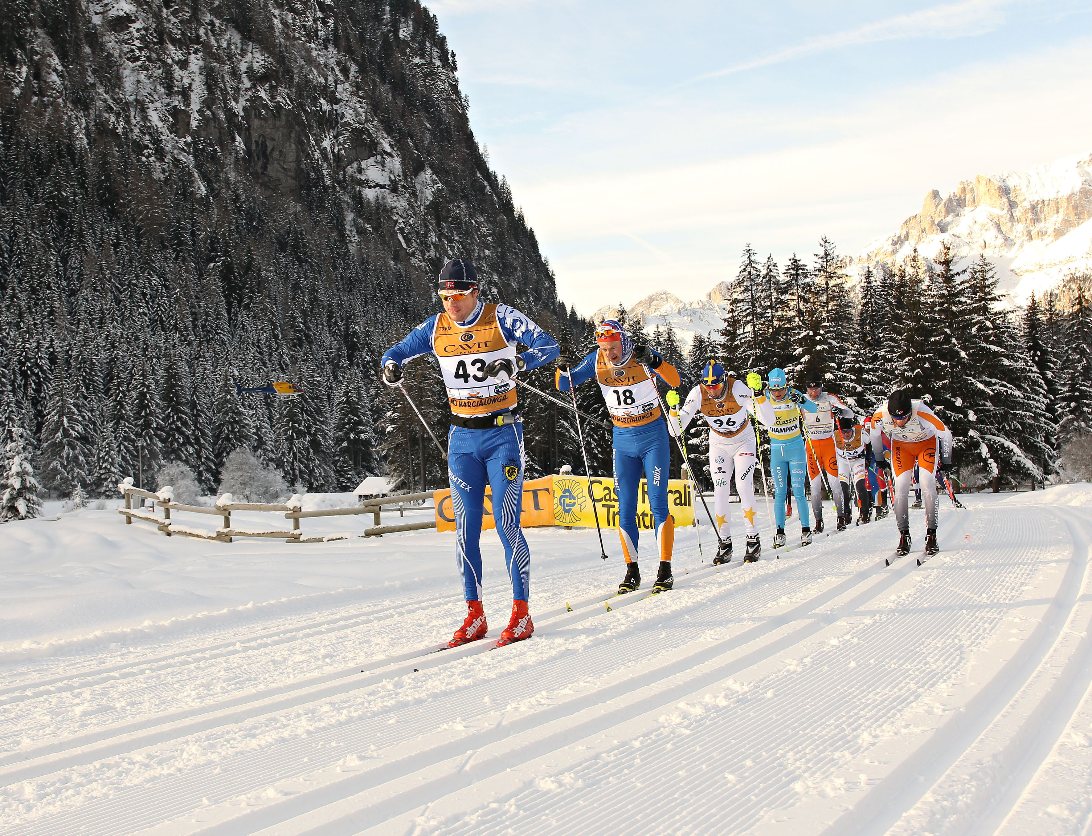 В январе и феврале Трентино становится площадкой для лучших соревнований по беговым лыжам. Сезон начинается баталиями на приз Tour de Ski в Валь-ди-Фьемме с зубодробительным финальным подъемом на Монте-Чермис. Marcialonga – одна из самых известных и массовых по составу участников гонок по классическим лыжам в мире, и она также проводится в Валь-ди-Фьемме: