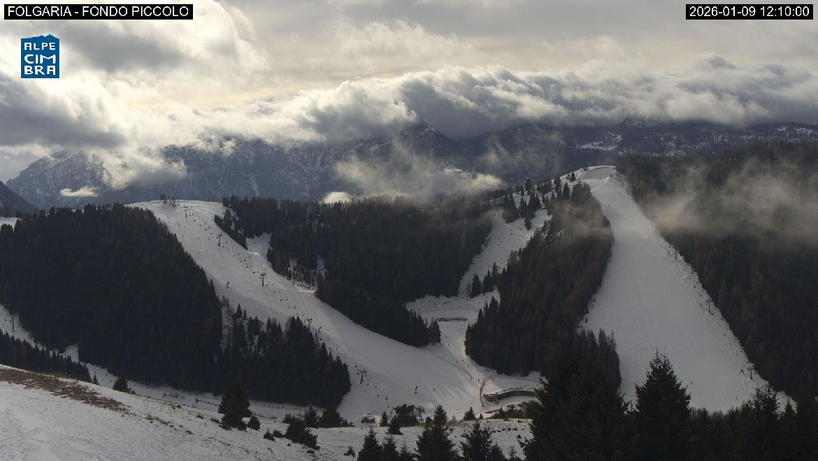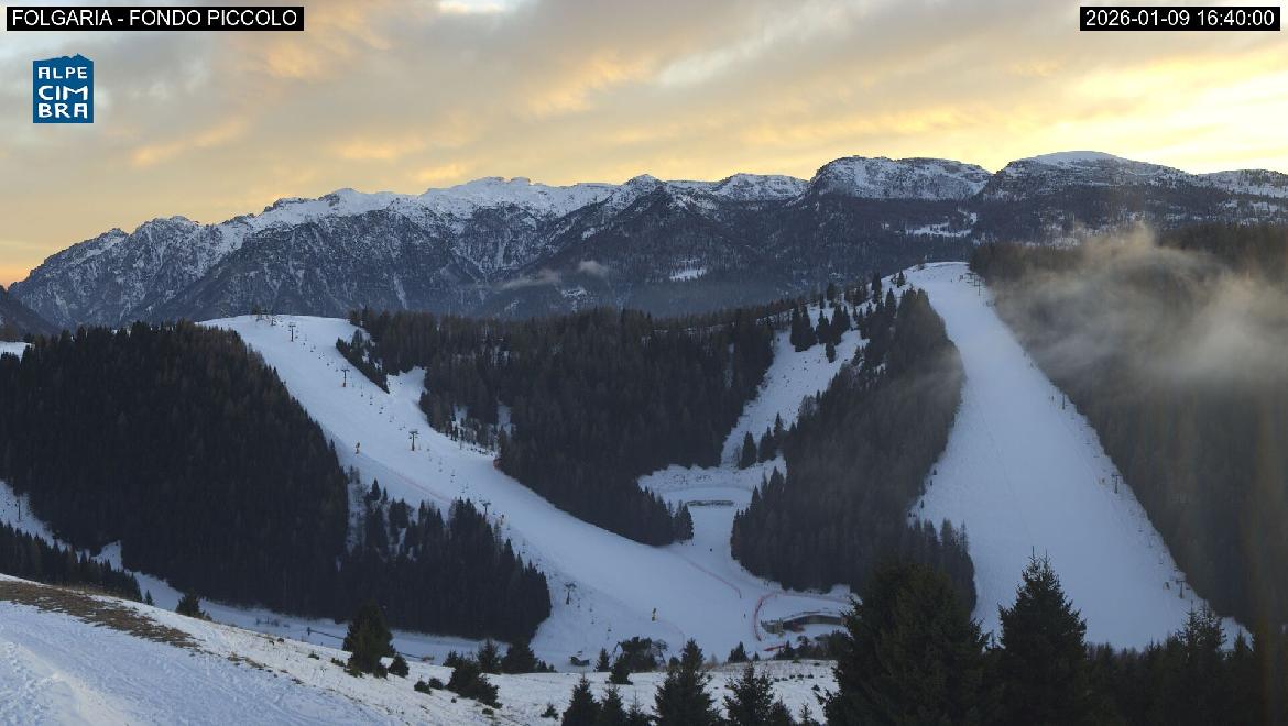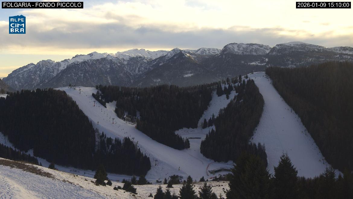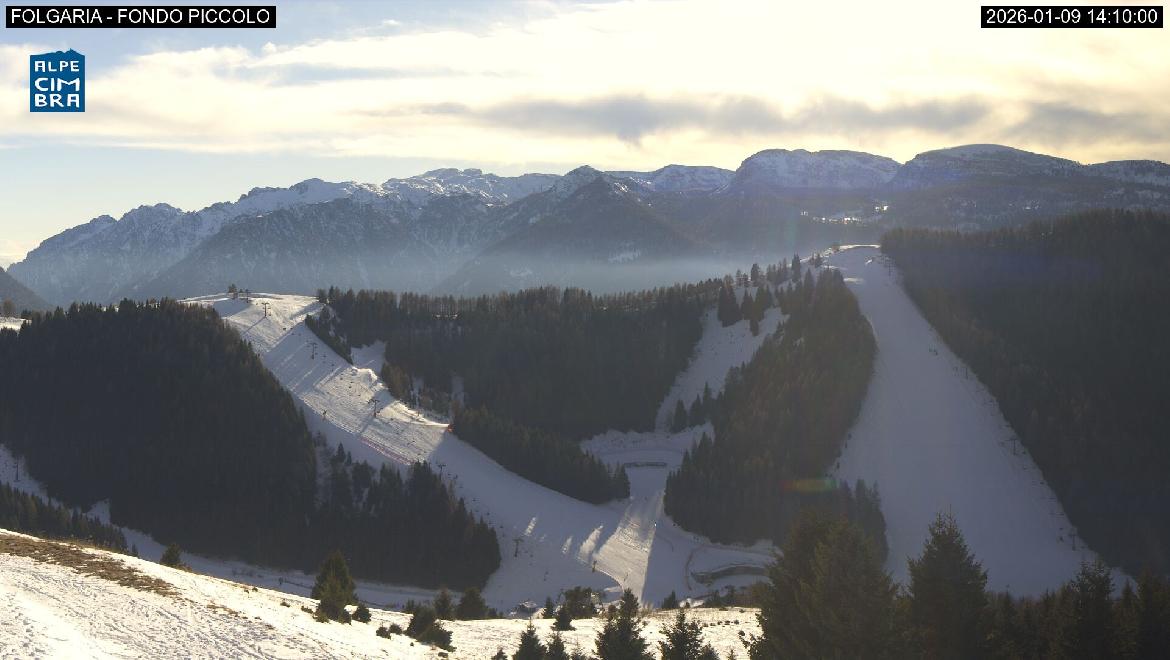 the Folgaria plateau, framed by forests and the Trentino peaks;