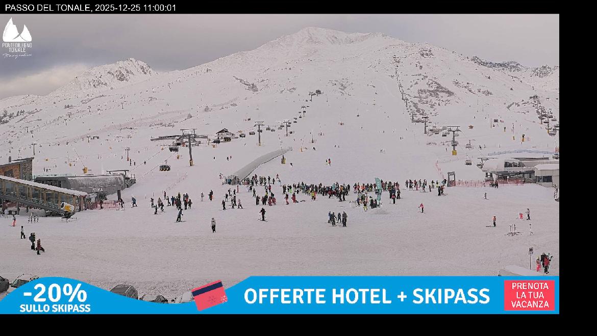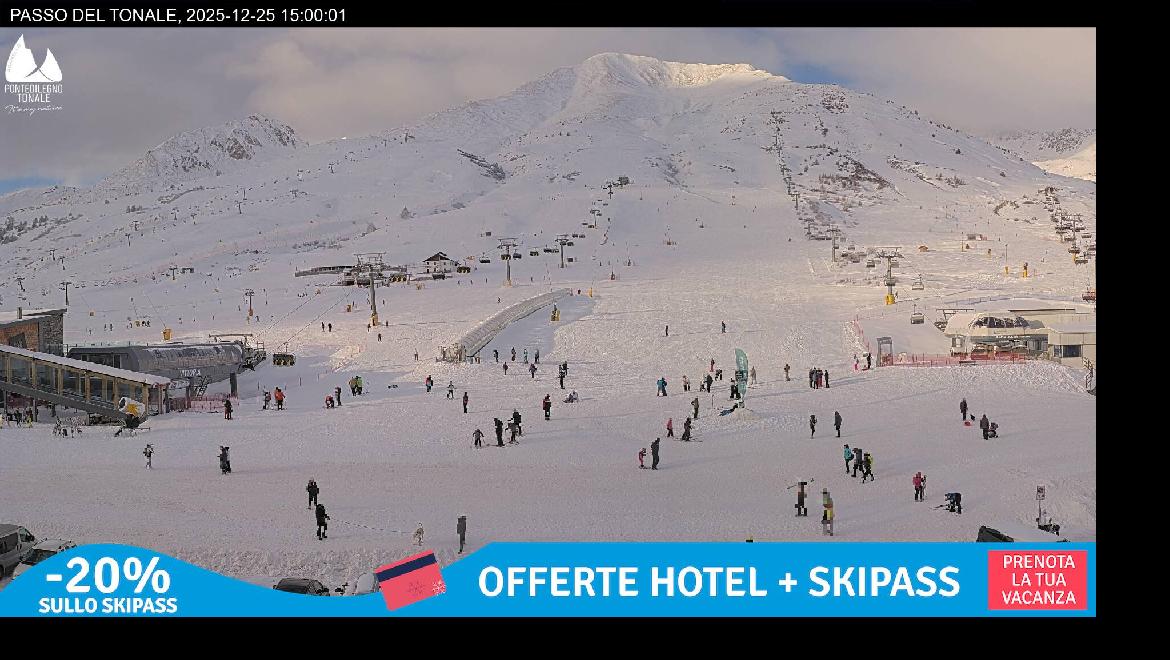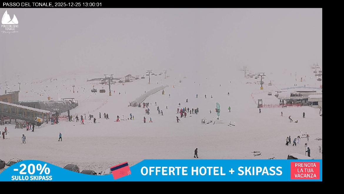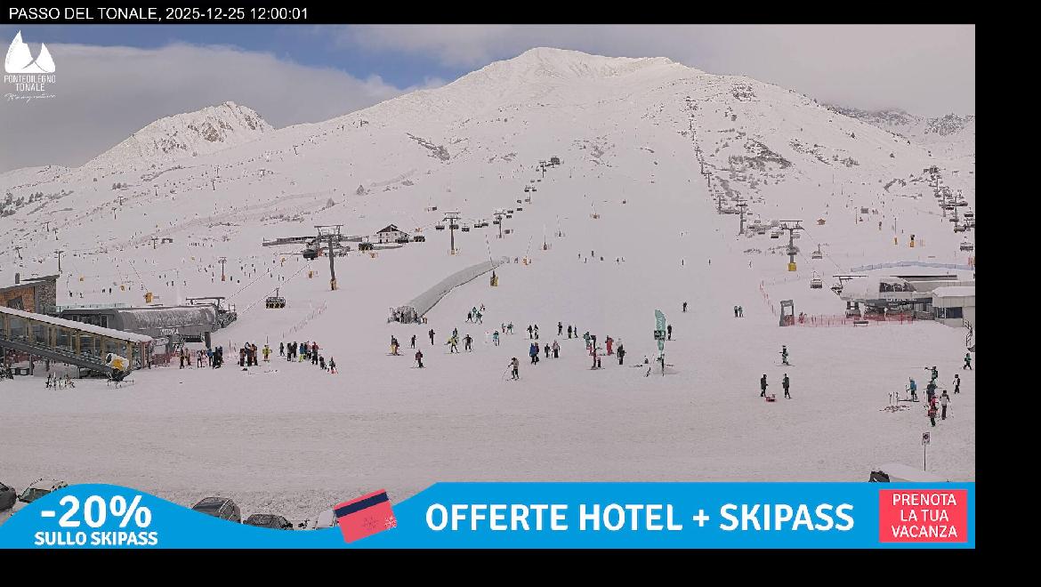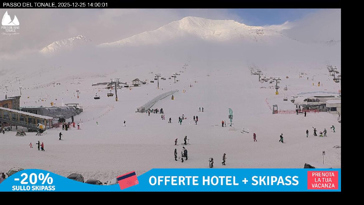 Last Update: 25/12/2025 16:00Scopri in diretta le condizioni meteo e l'attuale situazione neve al Passo del Tonale e nell'intero comprensorio sciistico Pontedilegno-Tonale!